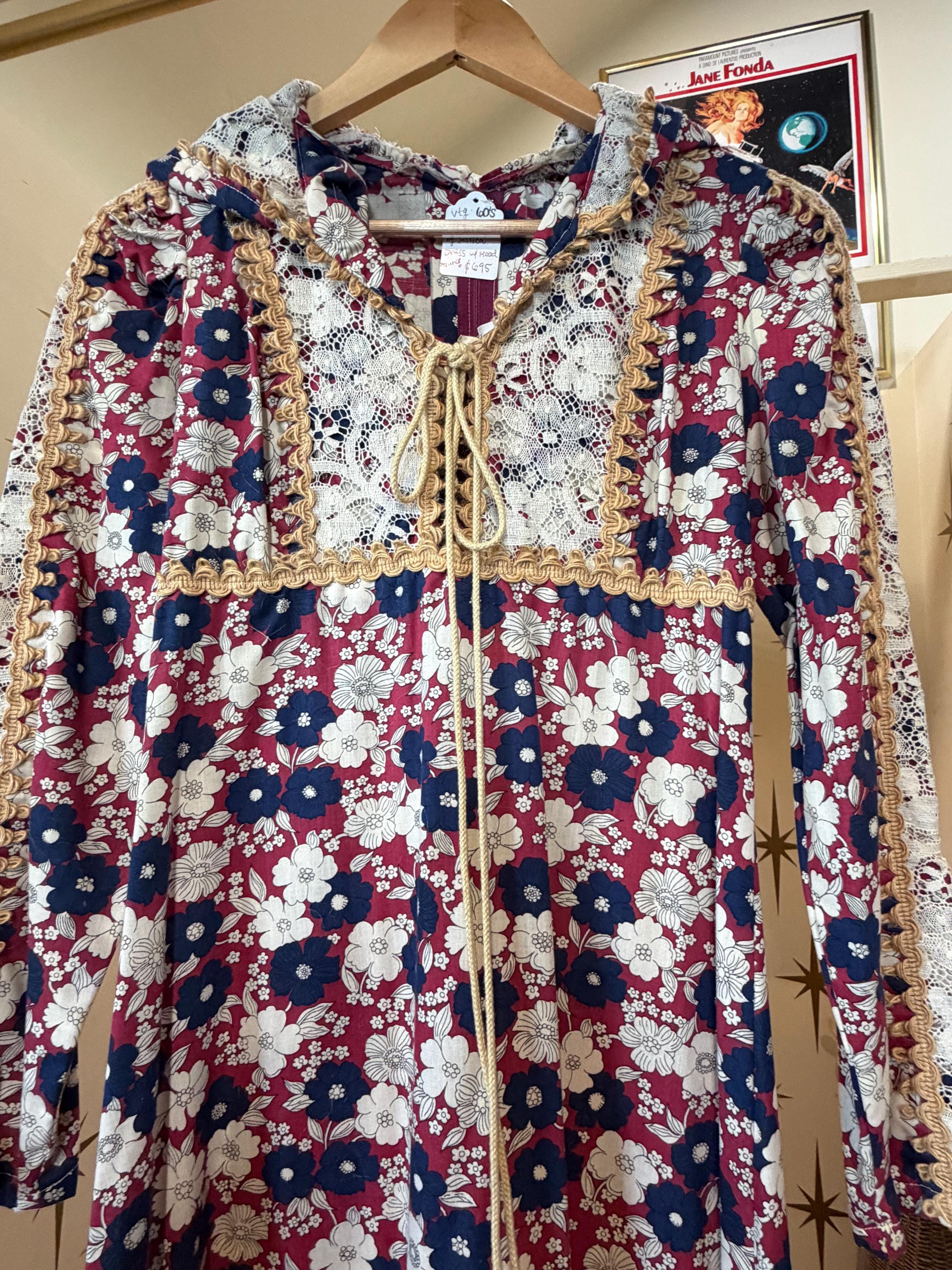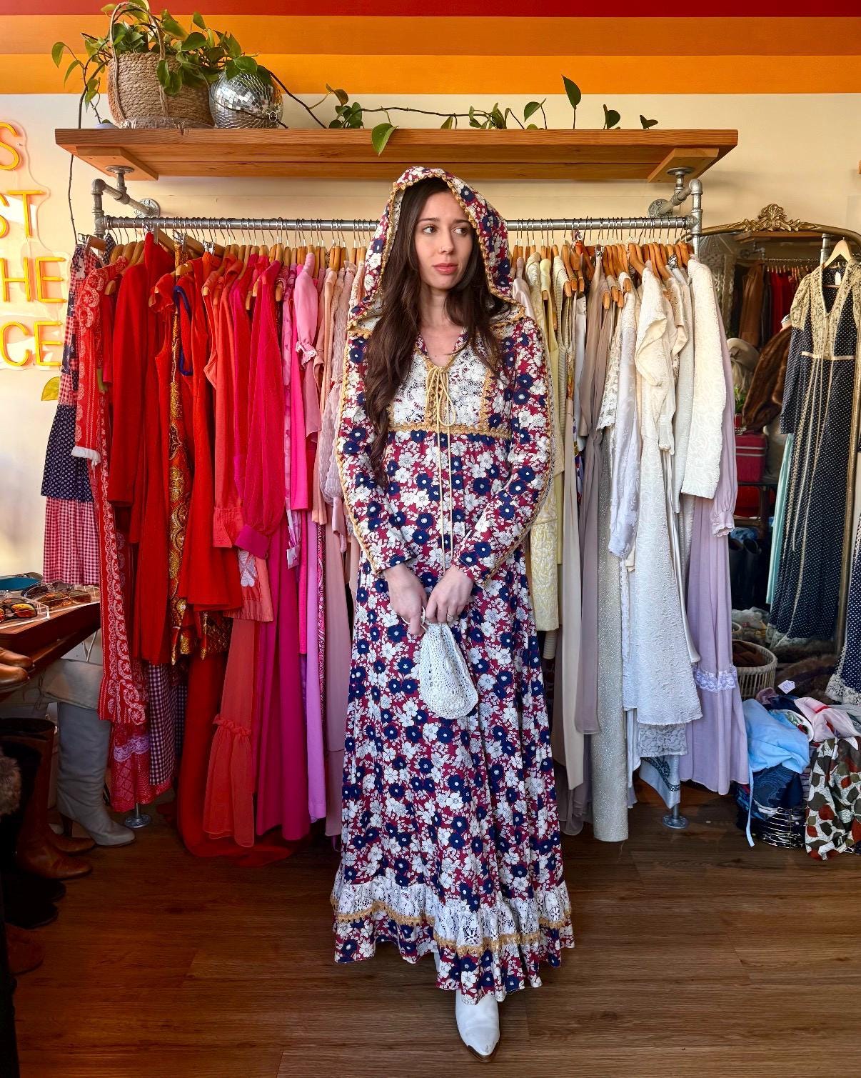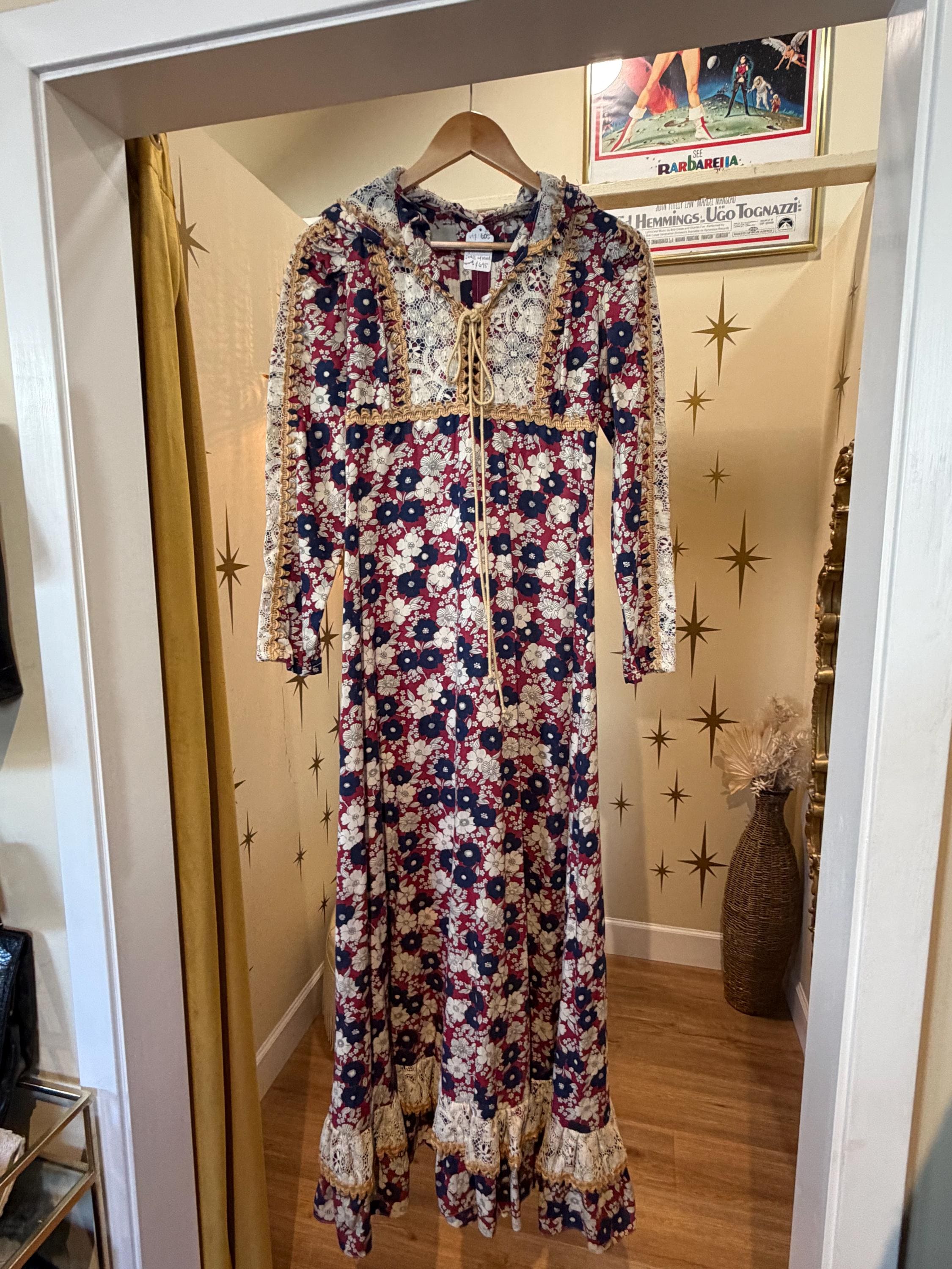 Extremely rare gorgeous vintage hooded Gunne Sax dress. 1960s maxi