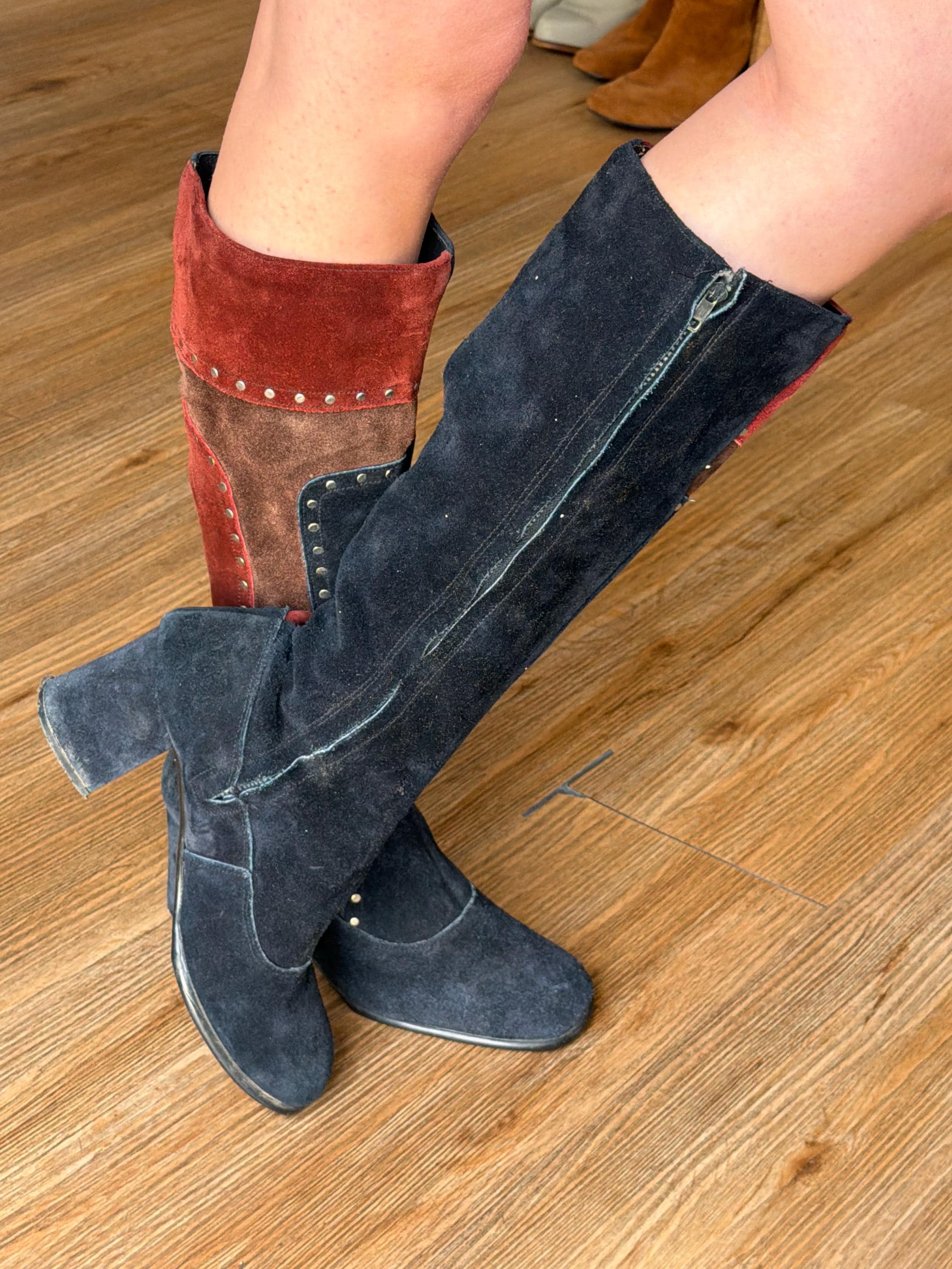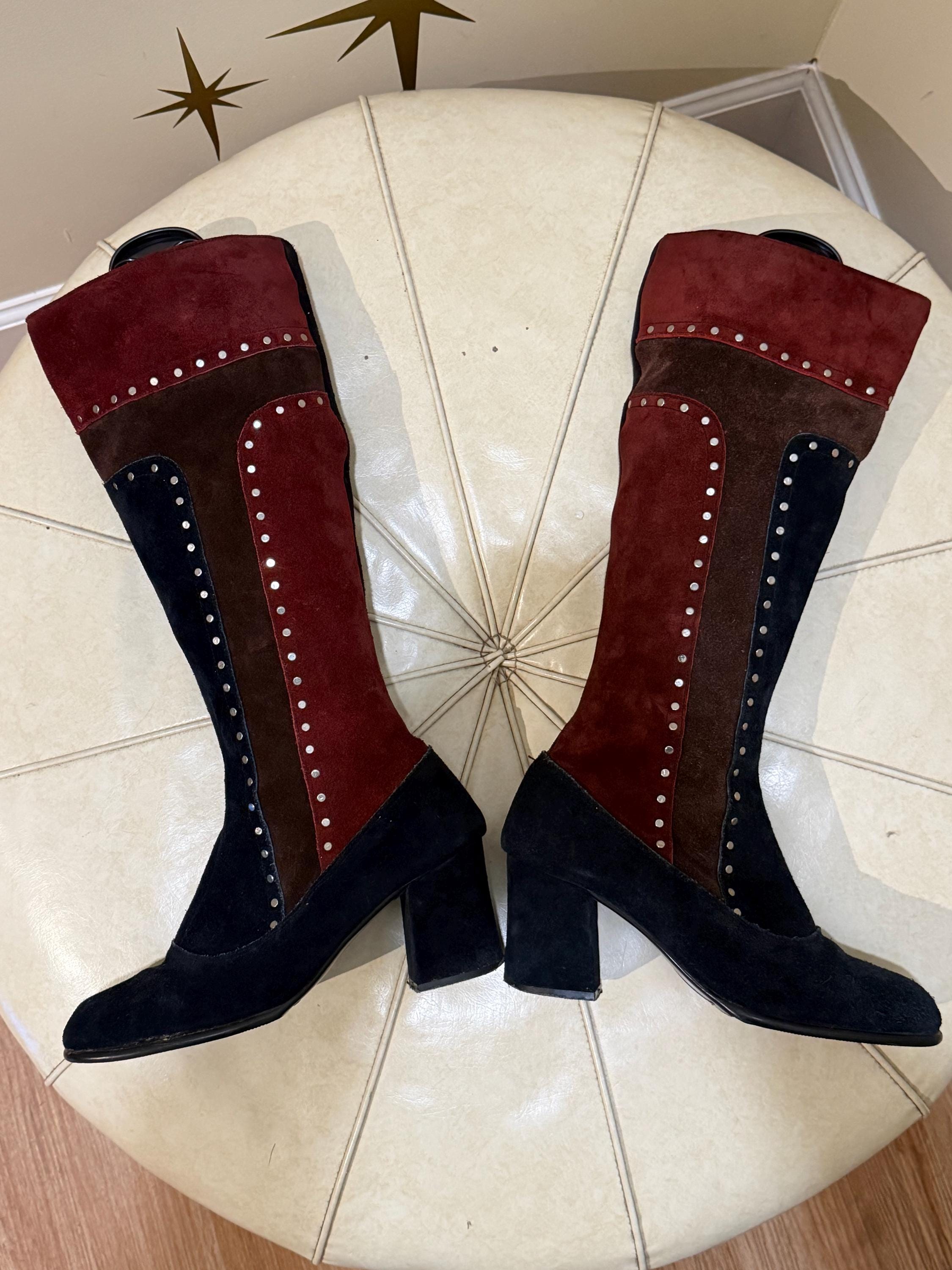 Navy, maroon and brown go go boot side zip