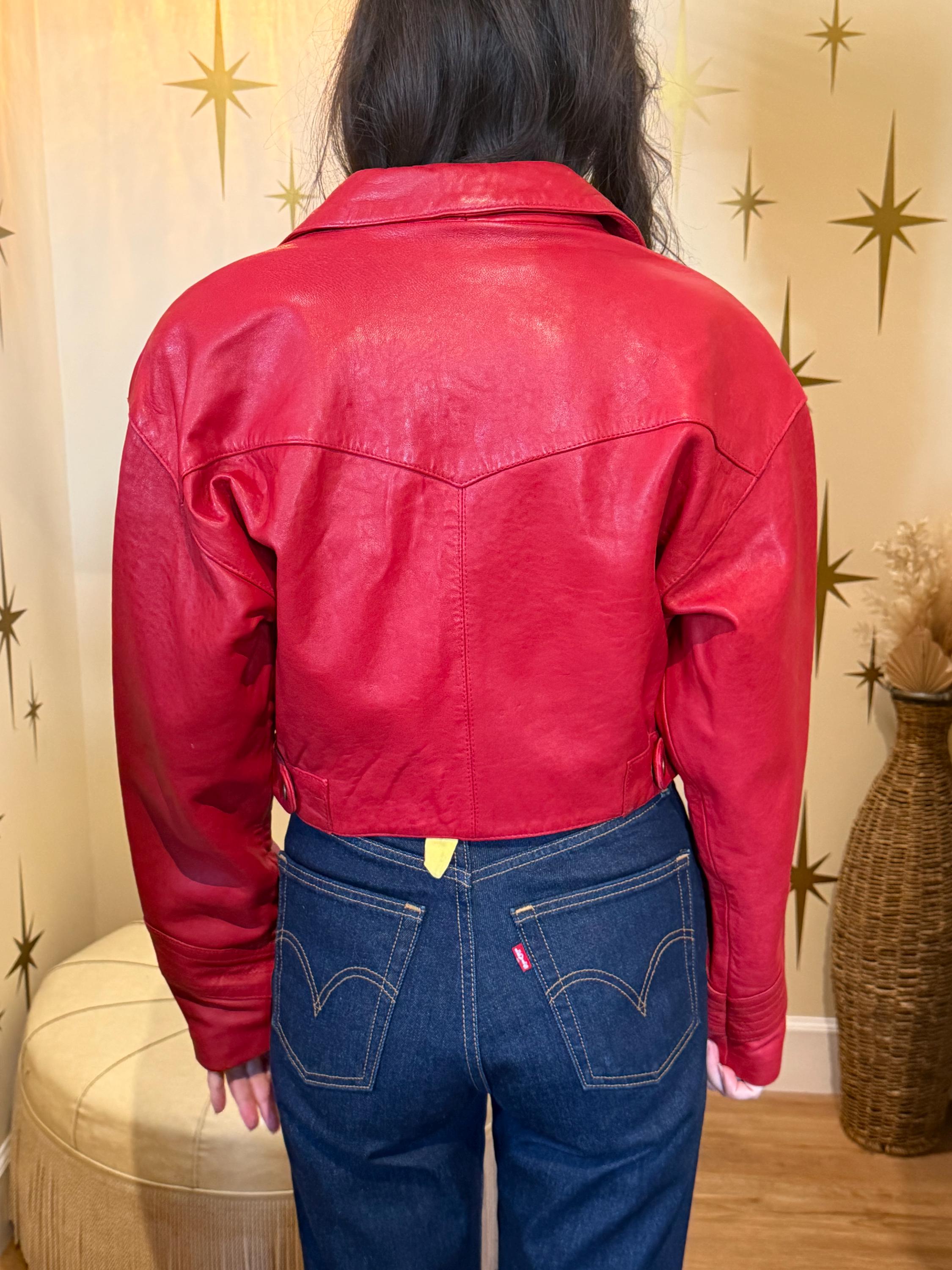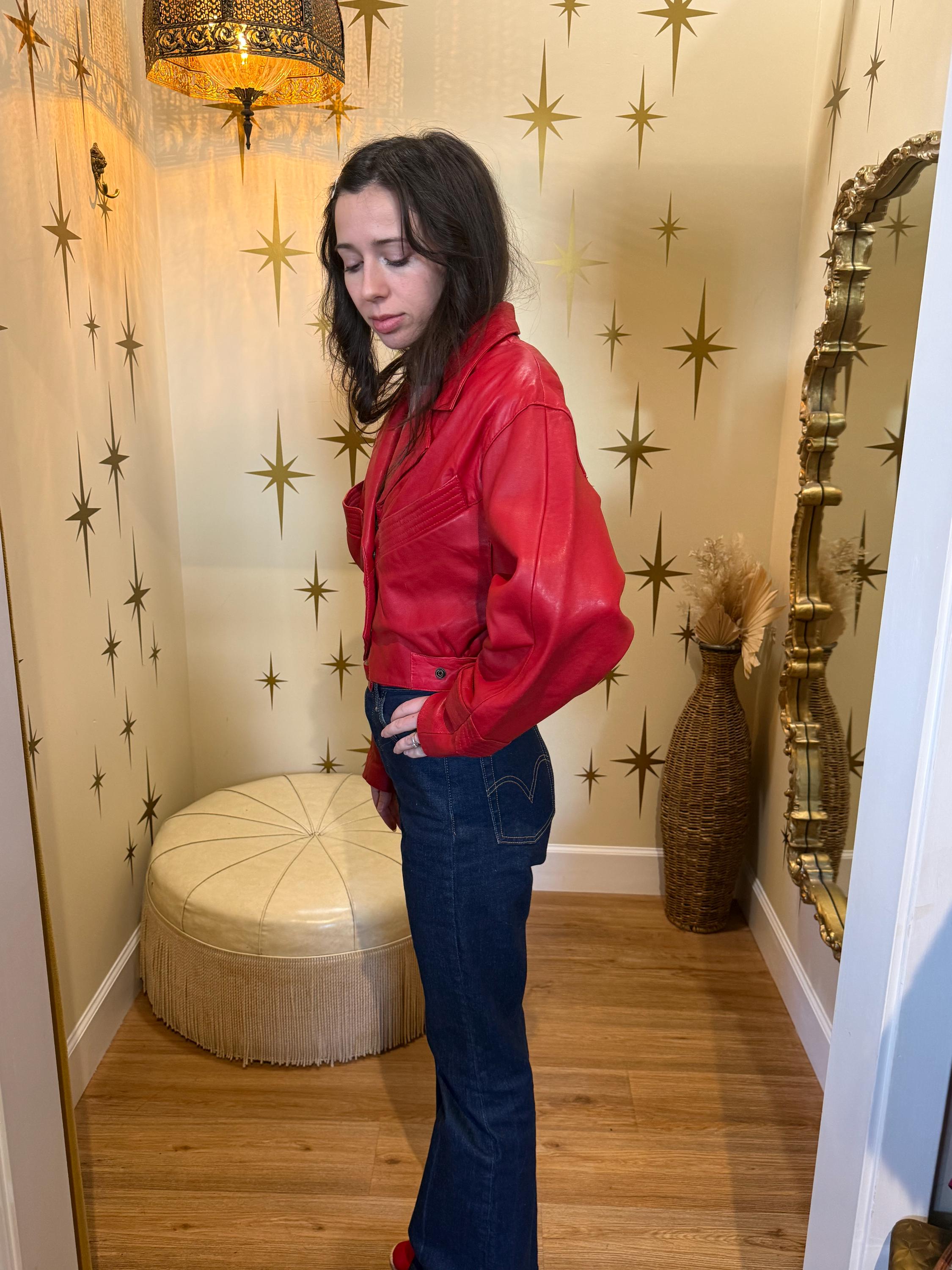 Amazing red short leather jacket