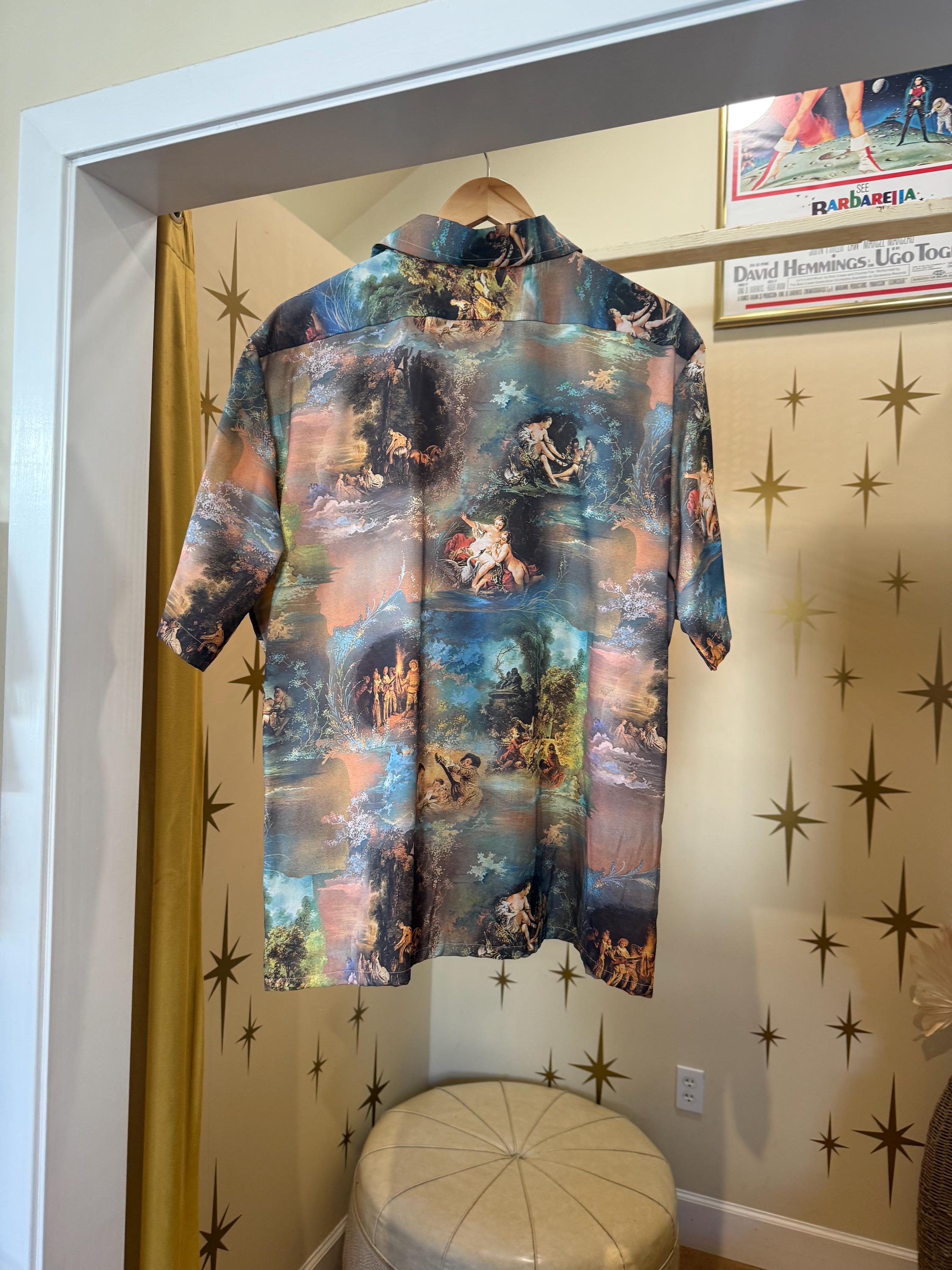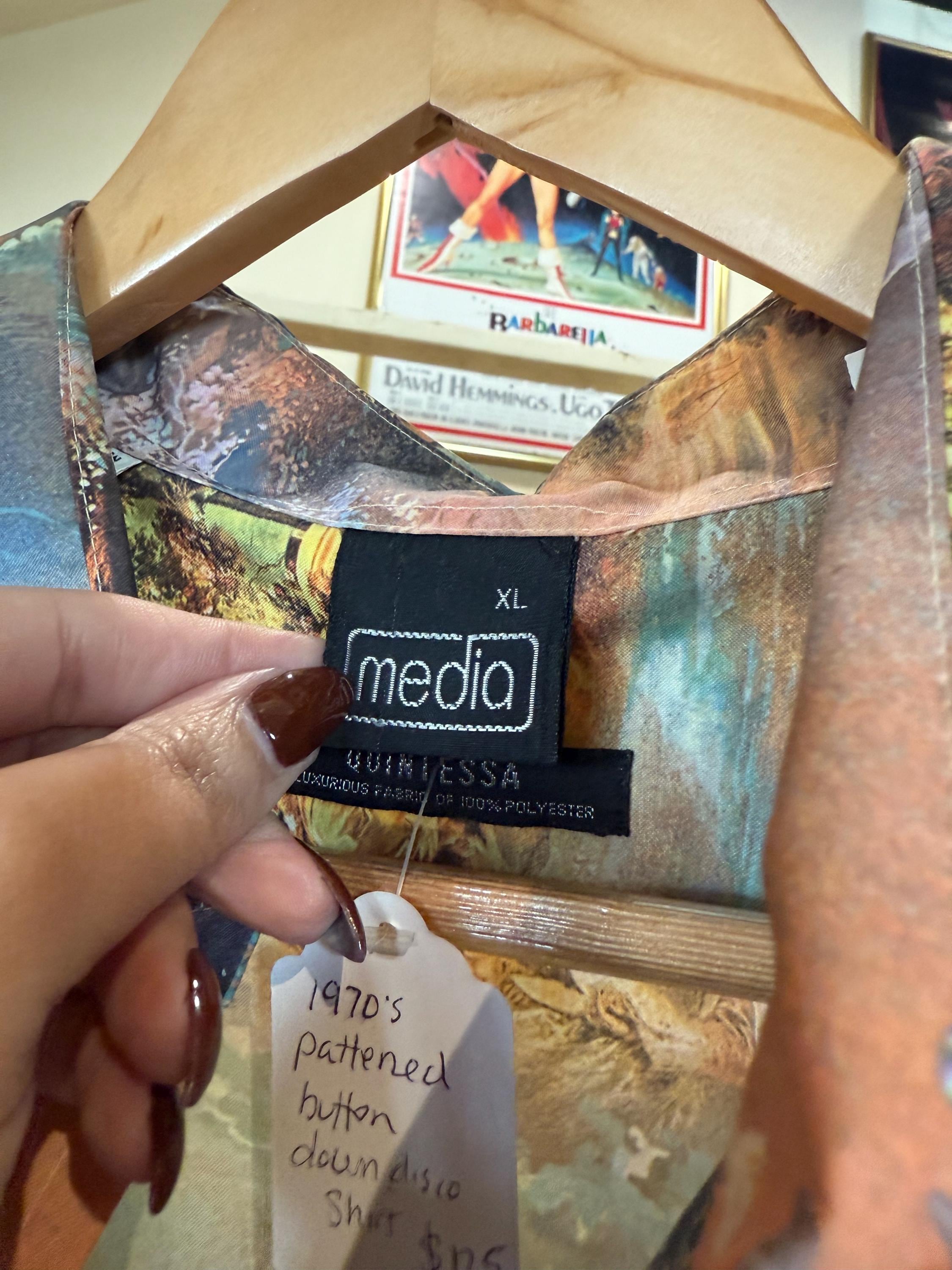 This is an amazing 1970s short sleeved men’s disco style cherub shirt