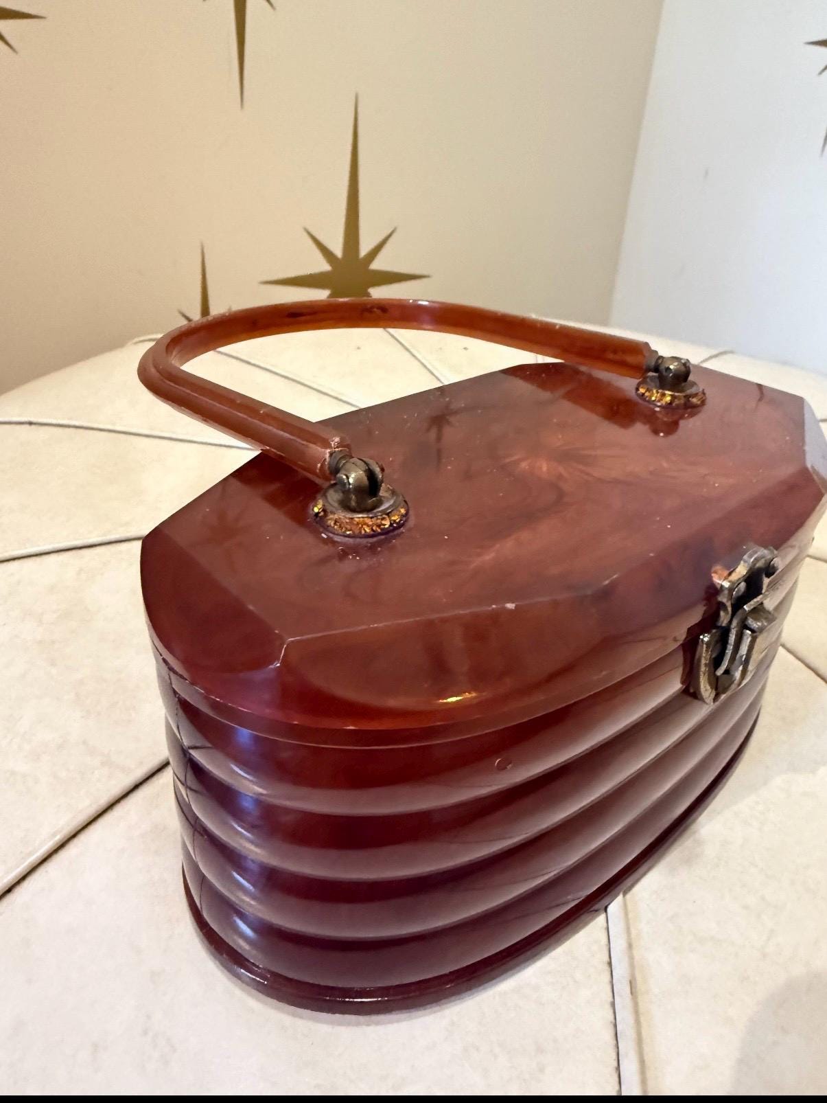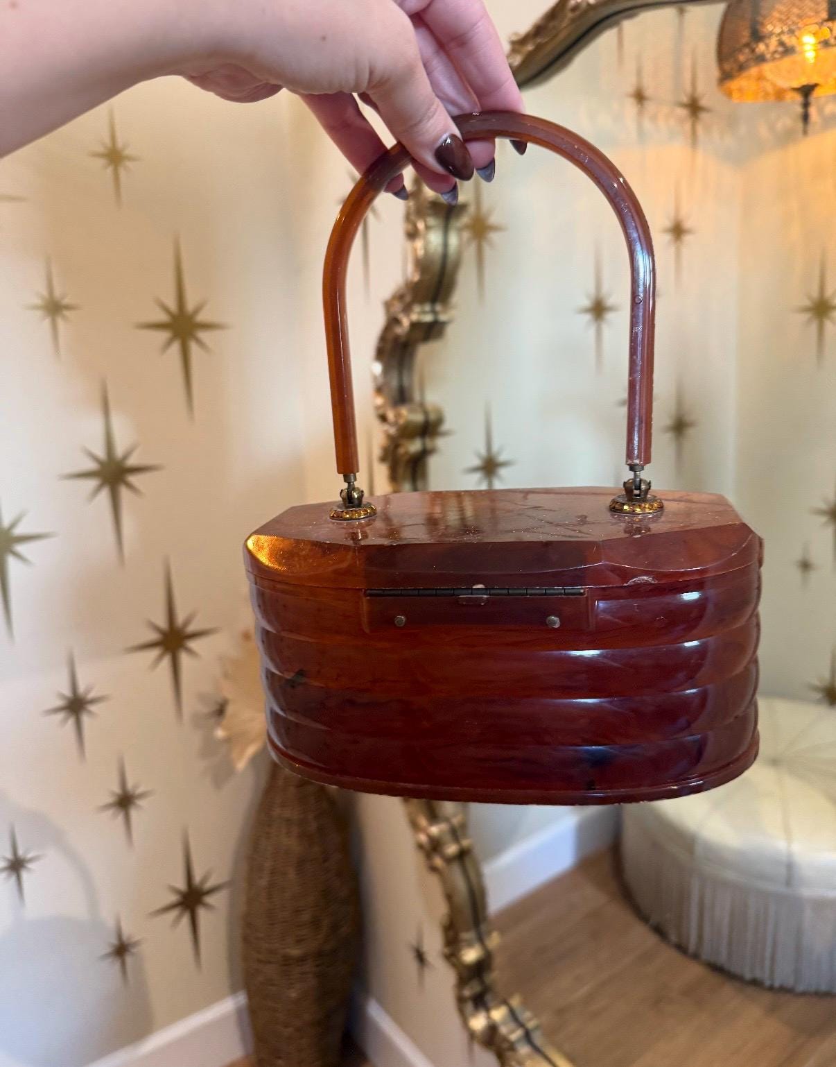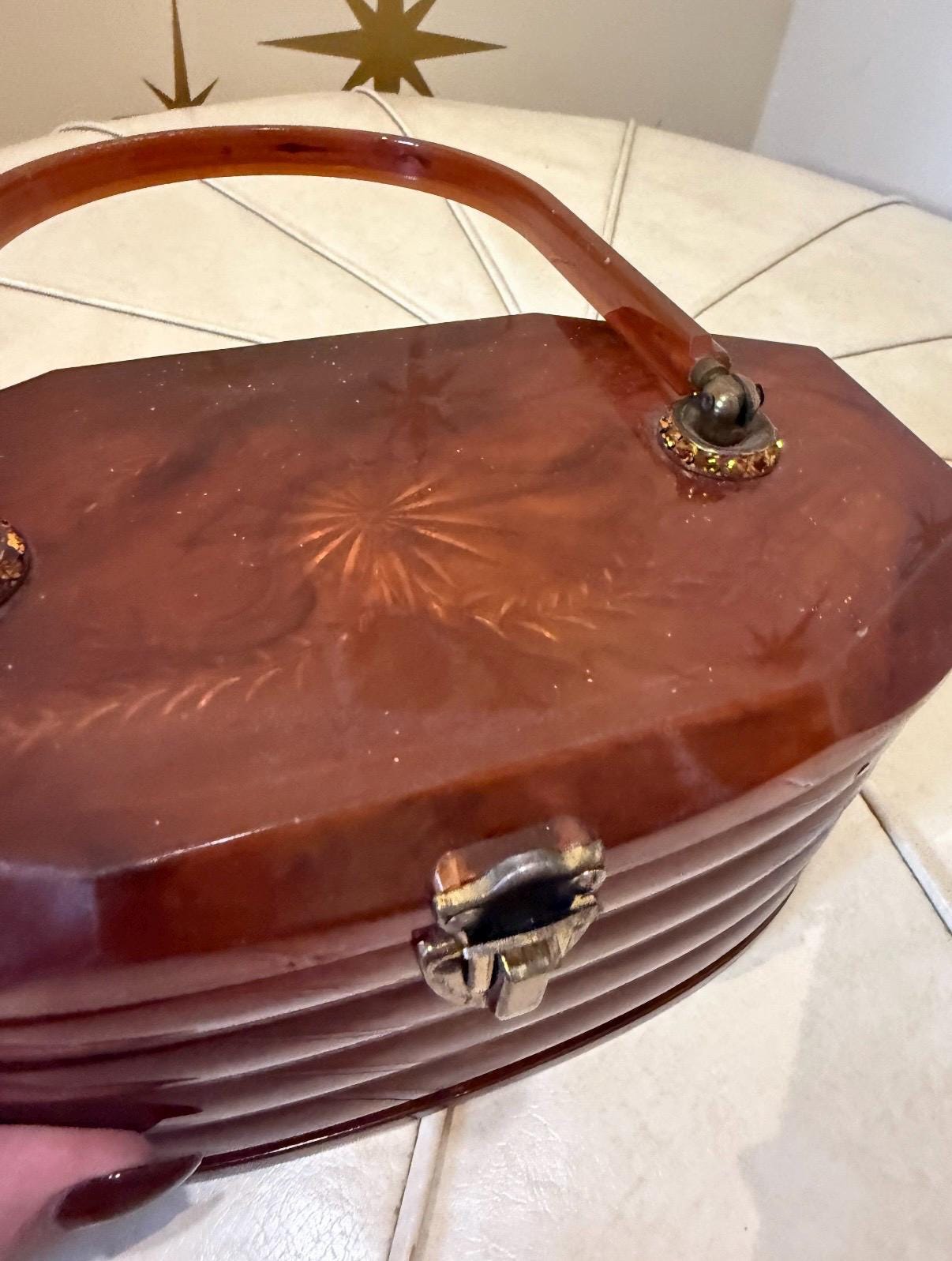 Very rare beautiful top handle lucite amber purse - gorgeous and great condition
