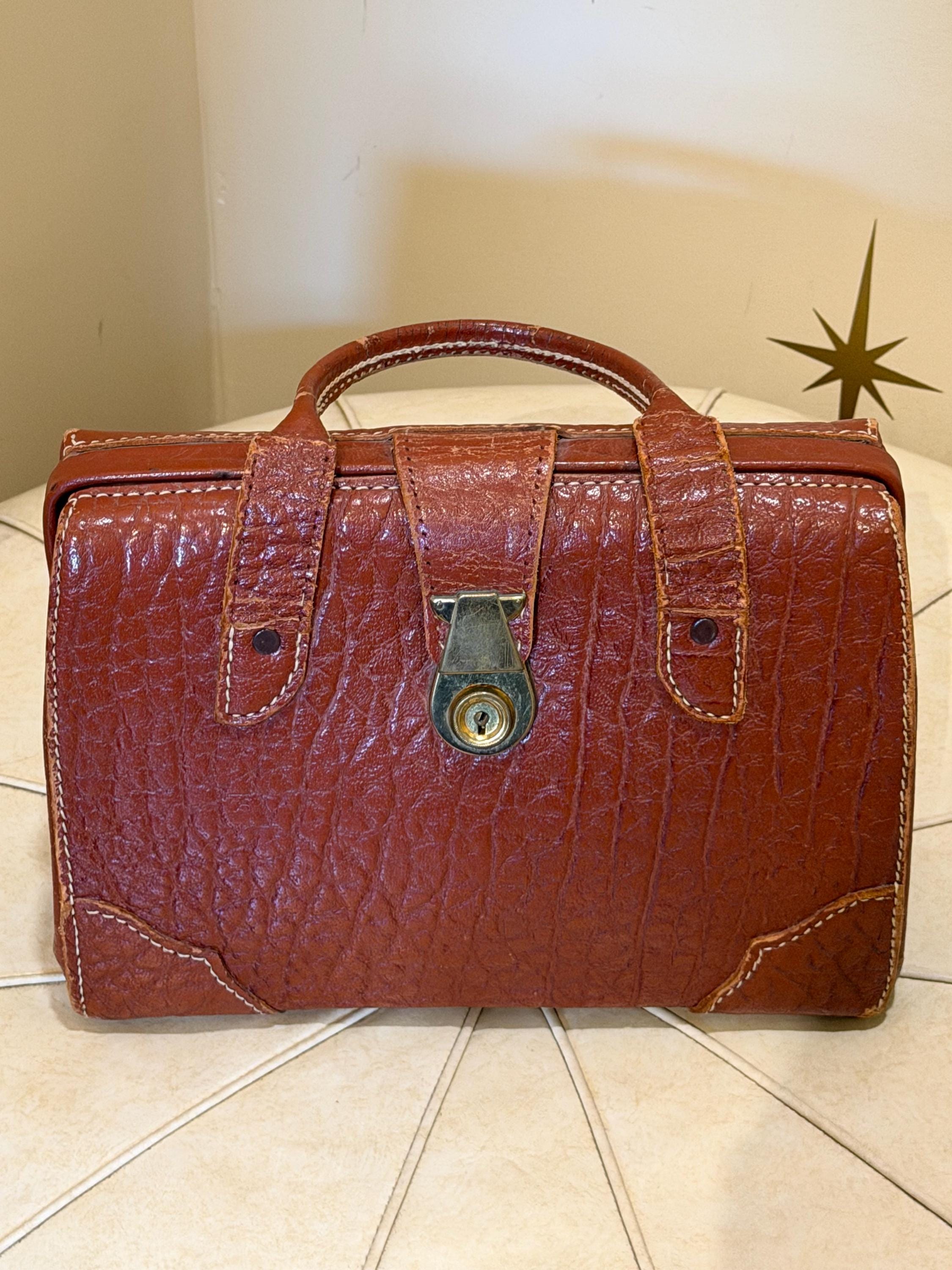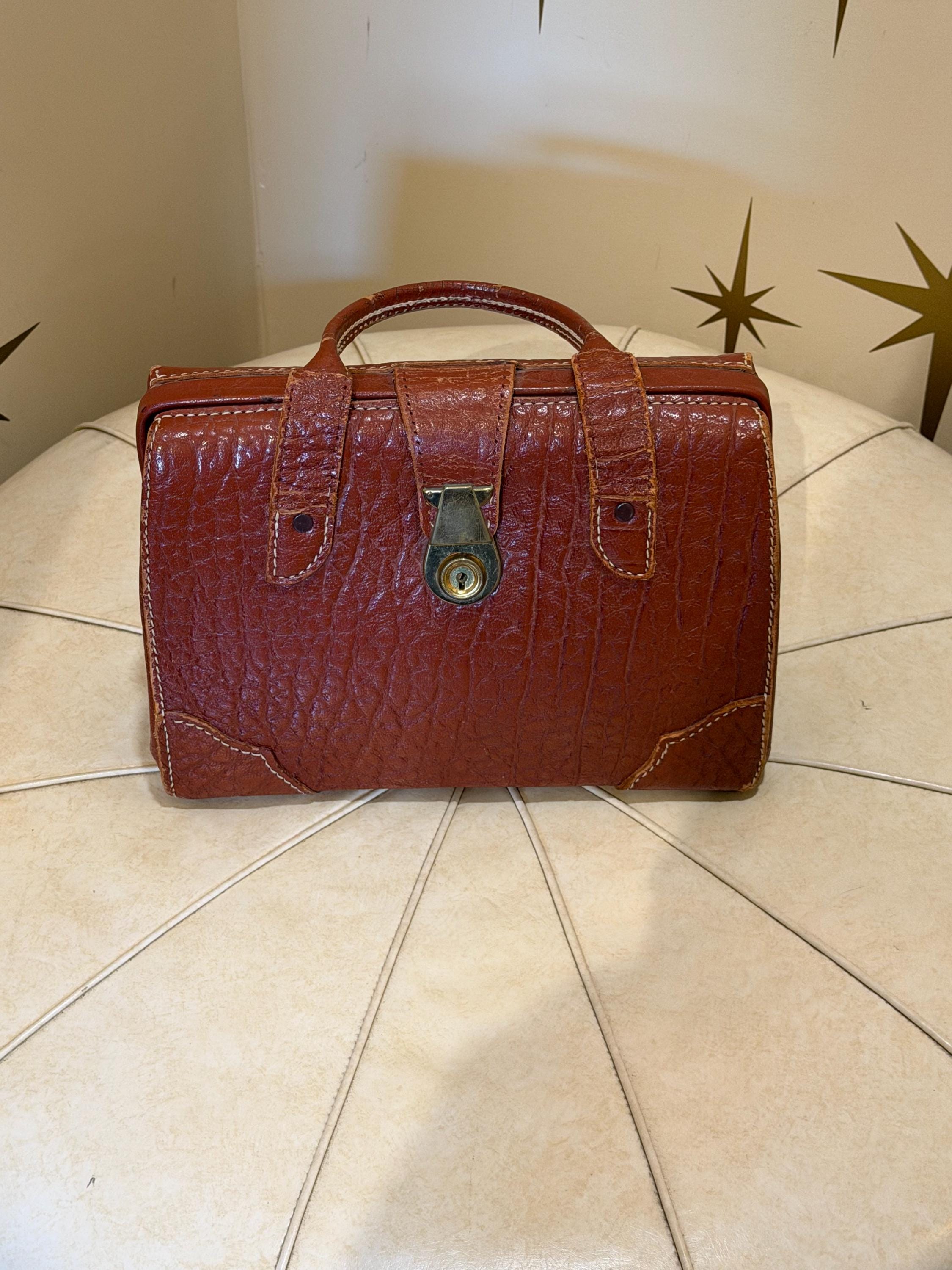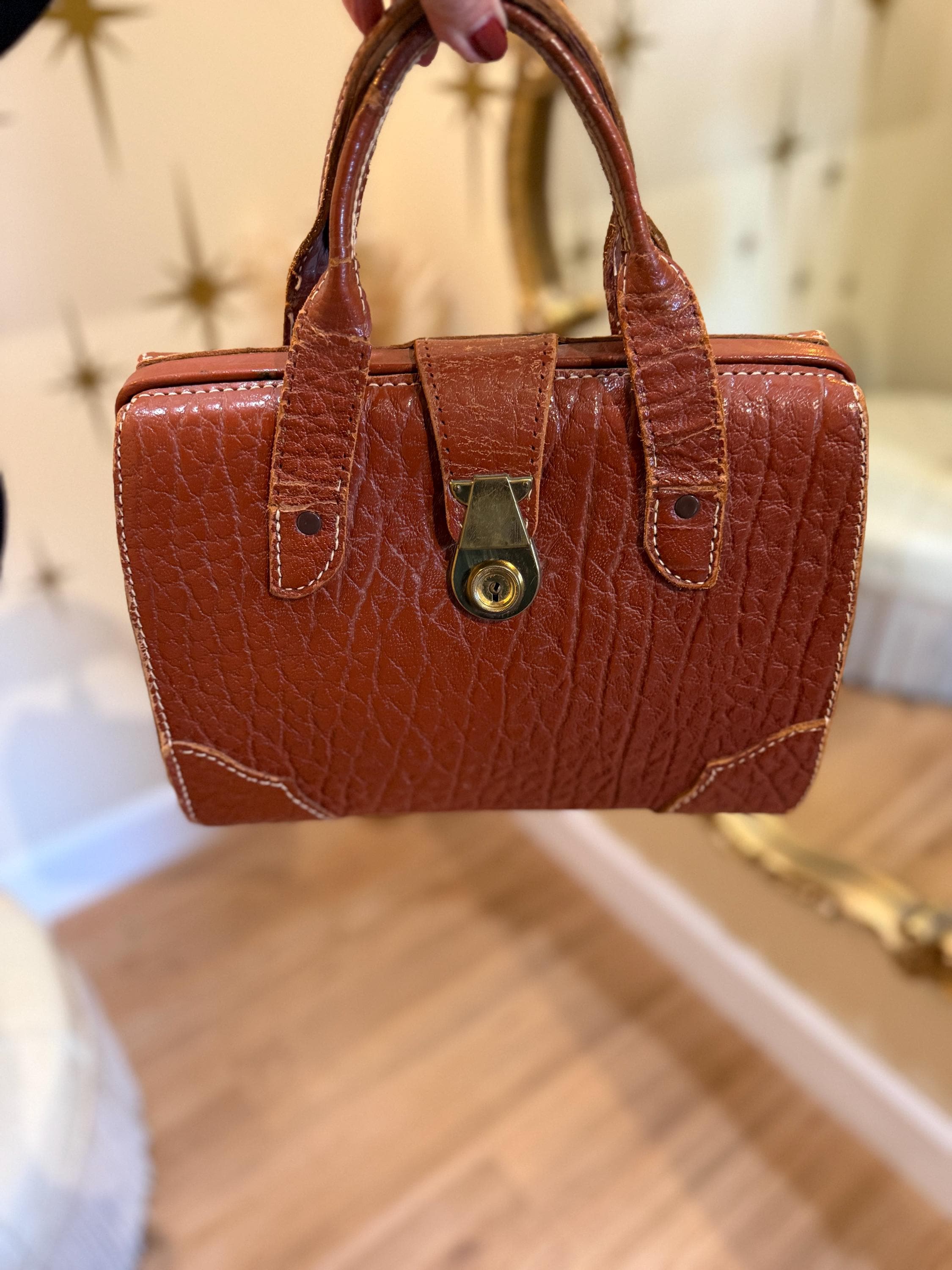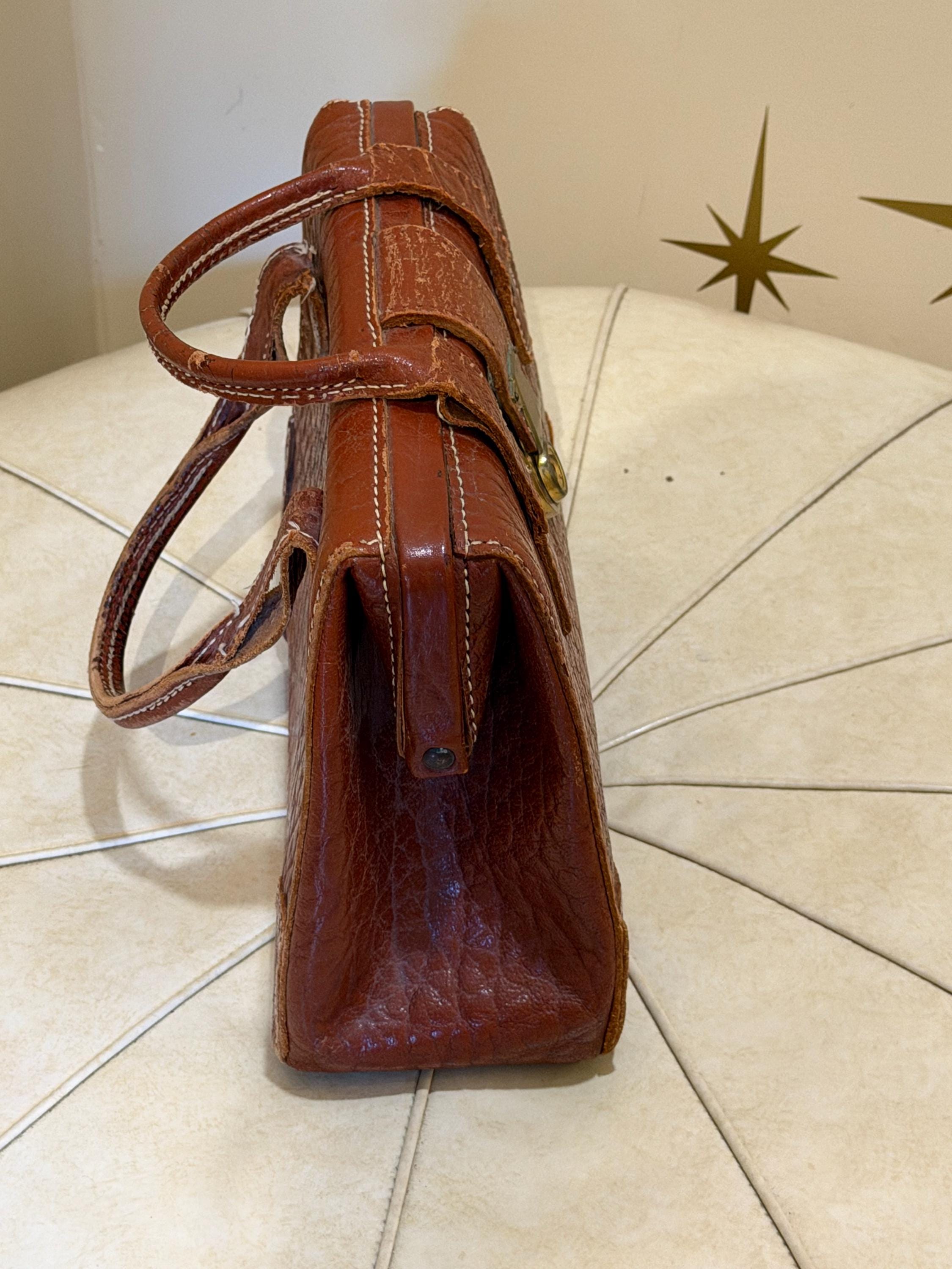Amazing vintage buffalo hide top handle purse