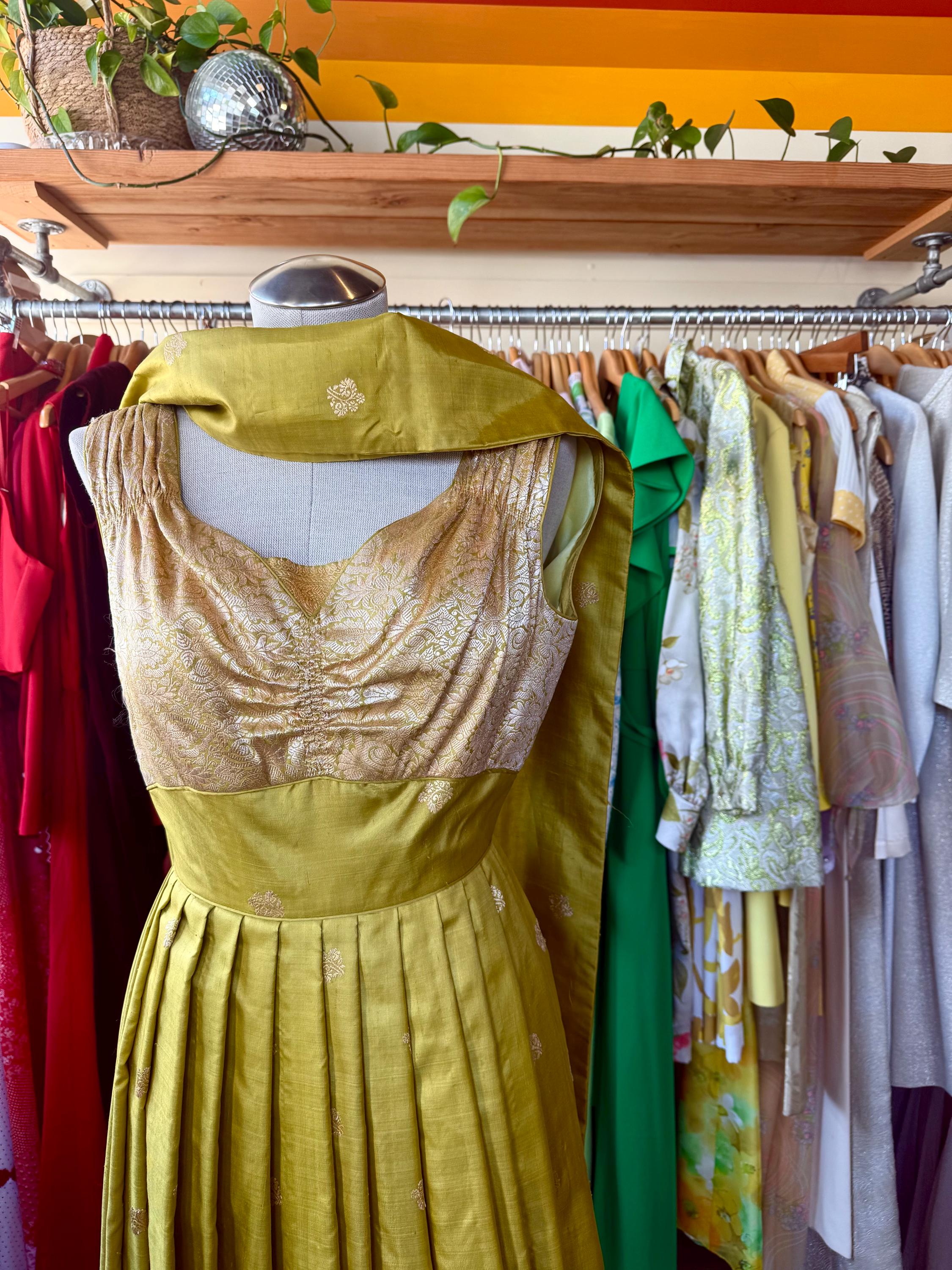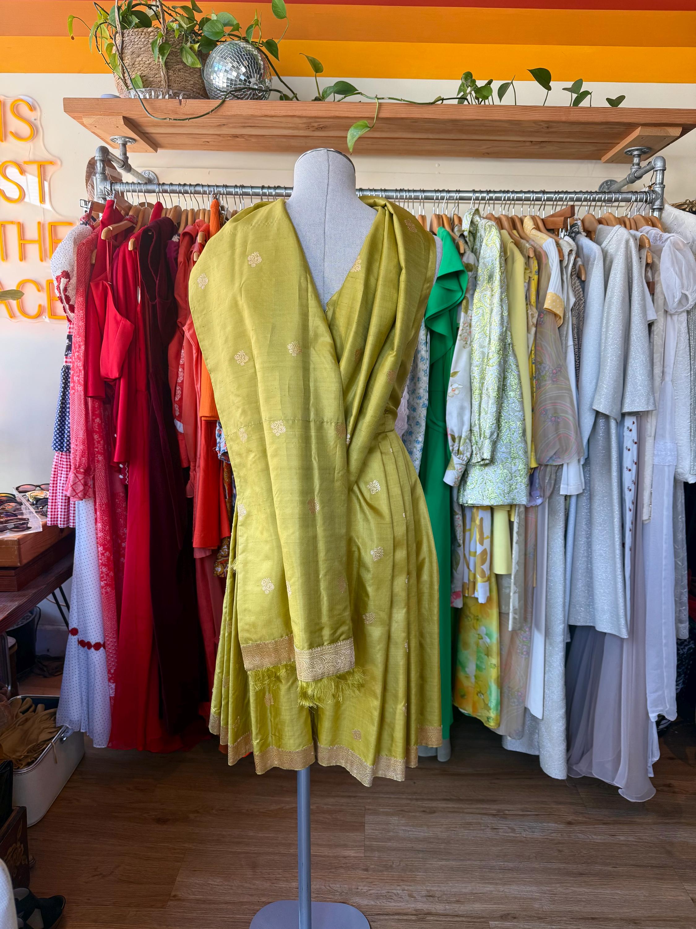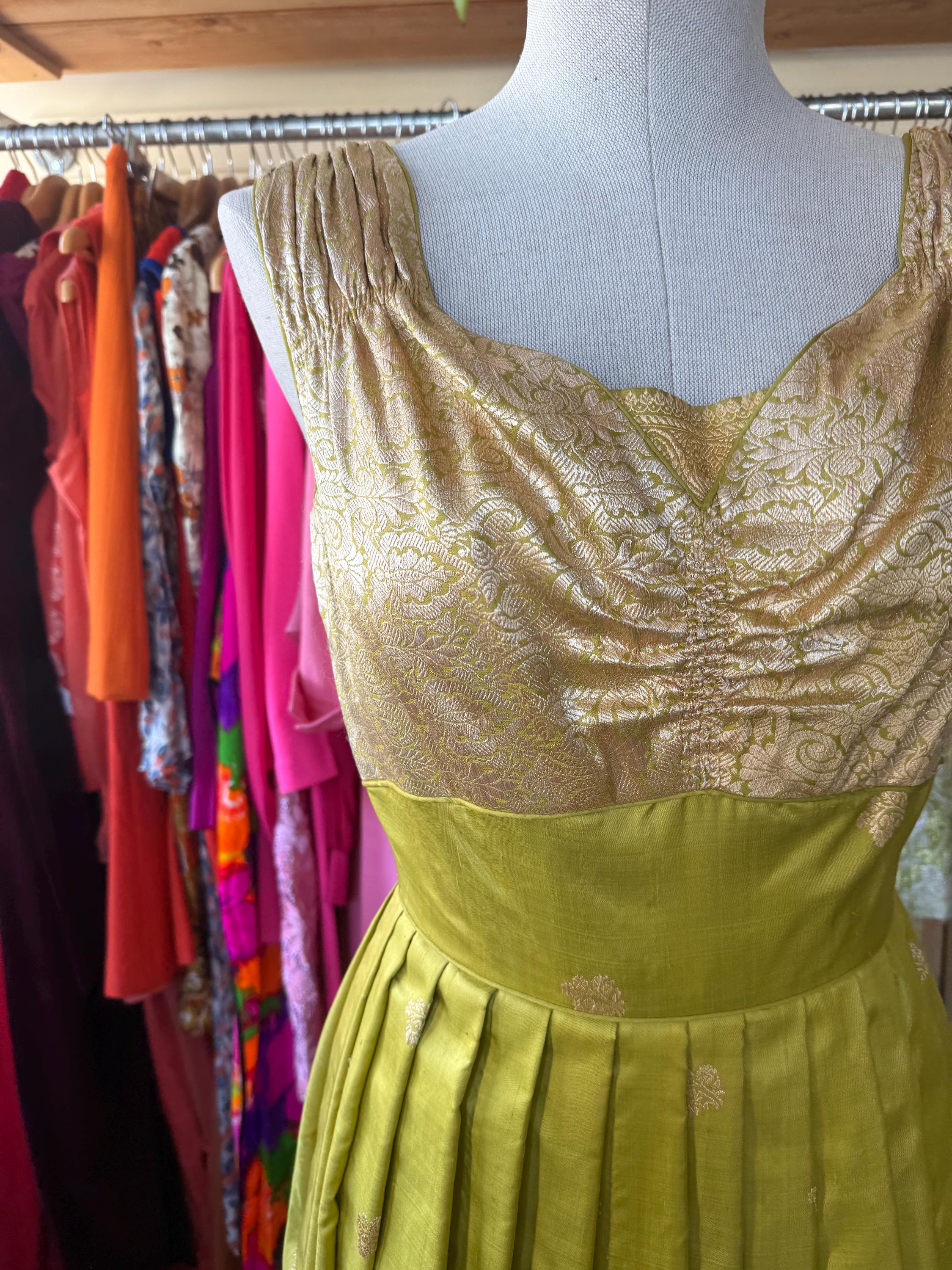 Amazing vintage 1950s yellow green cocktail dress with matching shawl