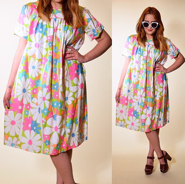 ADORABLE vintage 1960's TWIGGY inspired floral groovy swing dress!