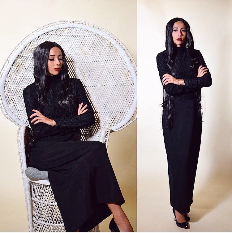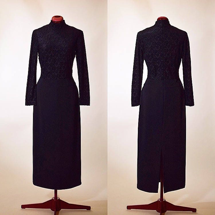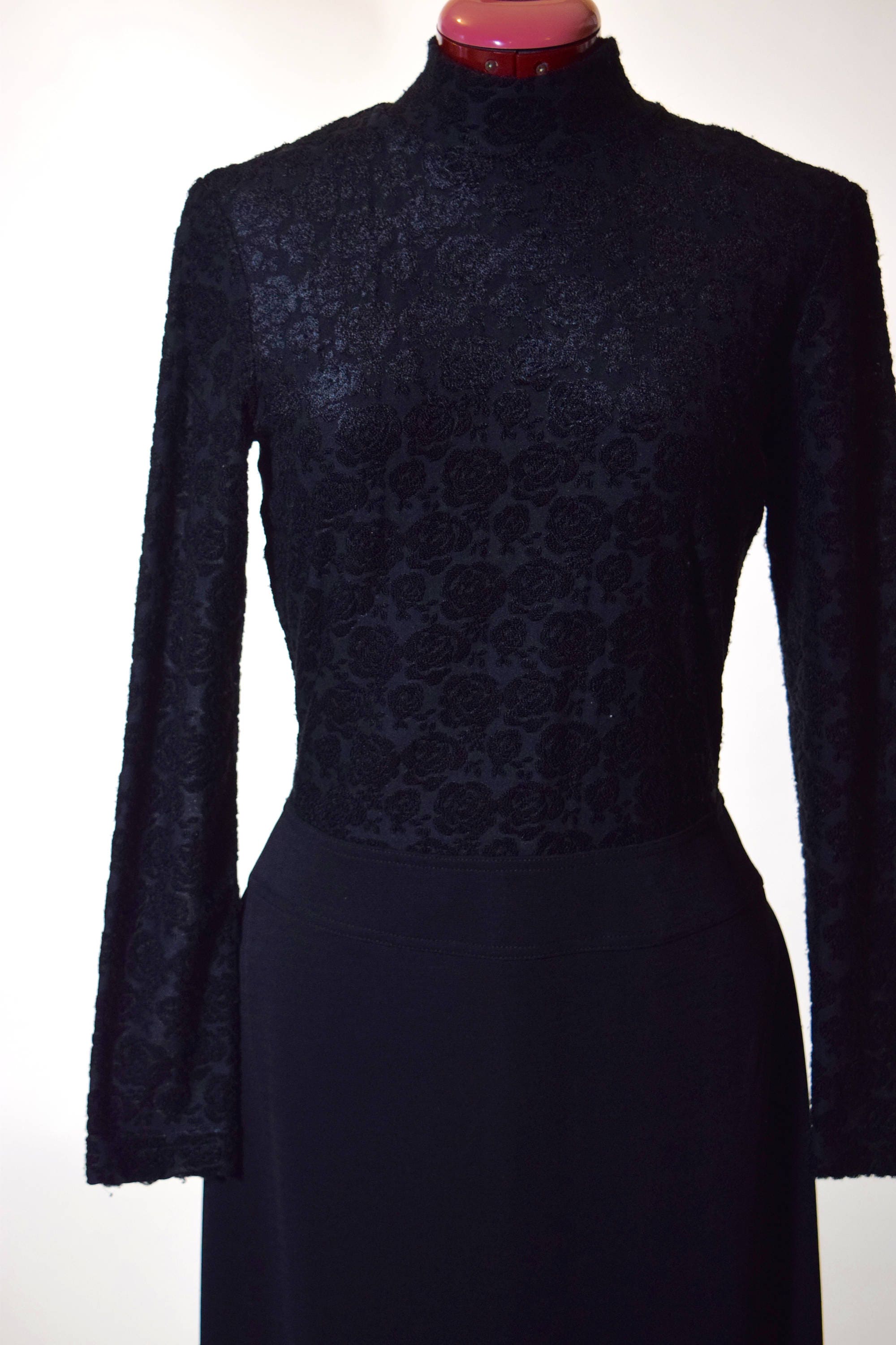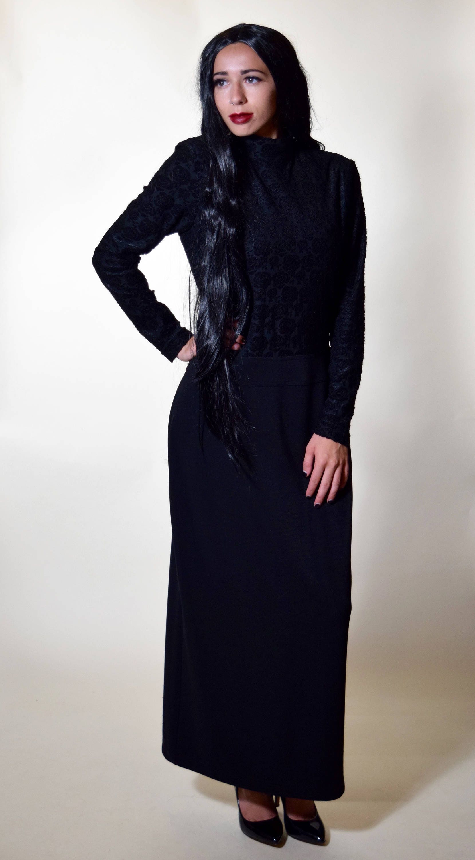 Channel you inner Morticia Addams in this vintage knock out black long sleeve maxi!!