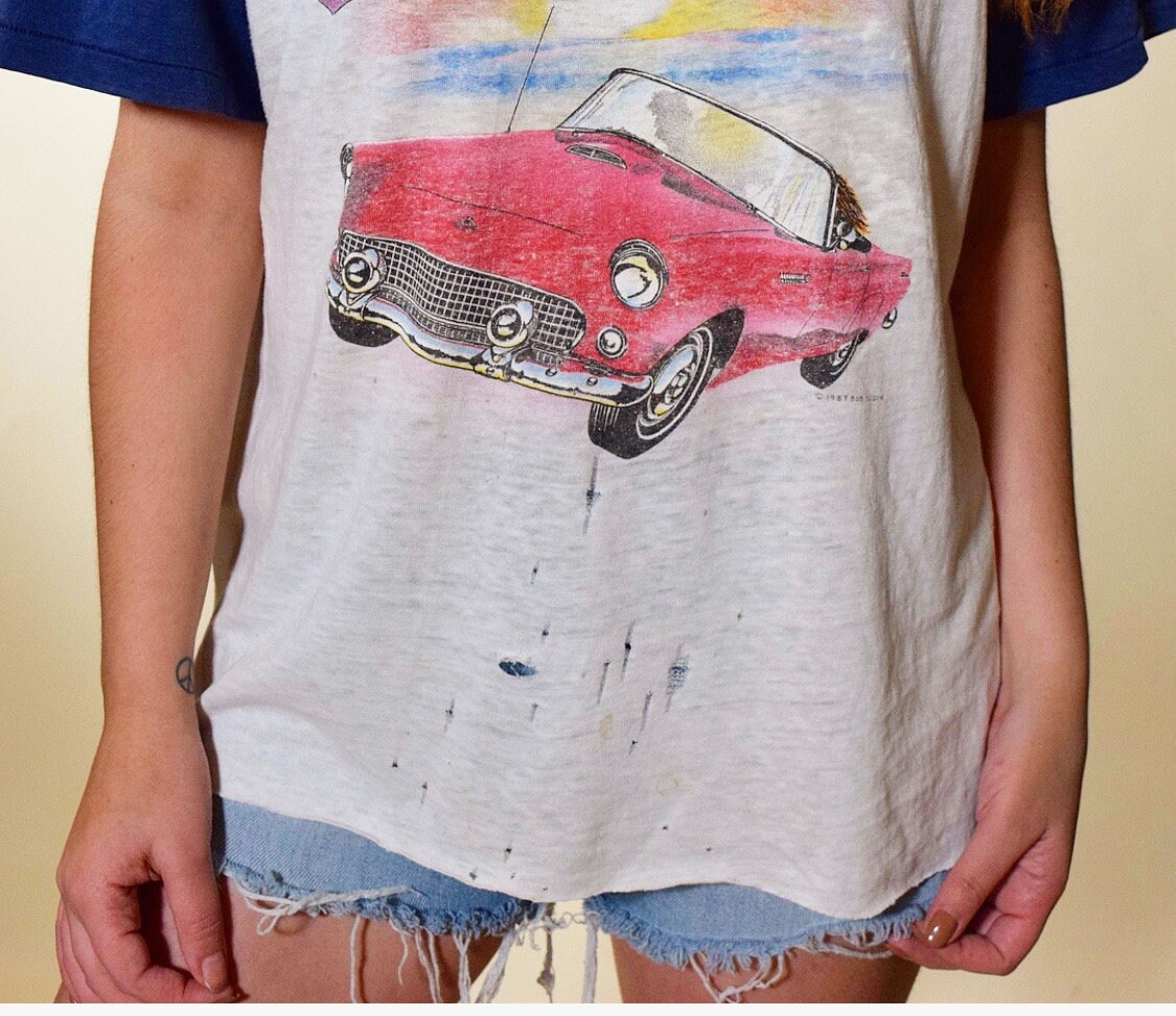 ~Pre-loved vintage condition, Natural signs of wear throughout + small tears at the bottom and small rust stain , Overall a super rad tee that lives an breaths Rock N Roll! Recently washed by us and no odor or other major flaws
