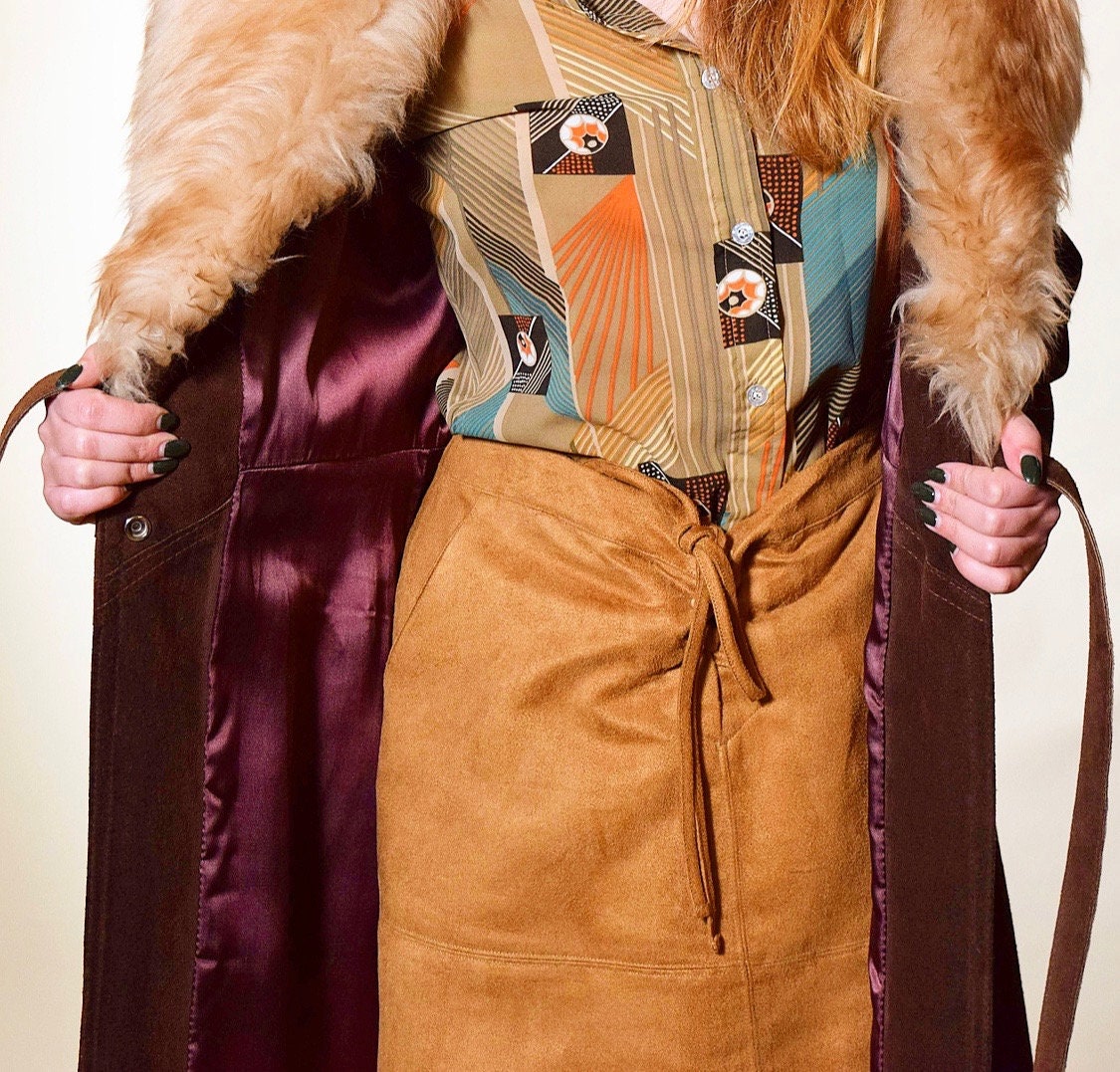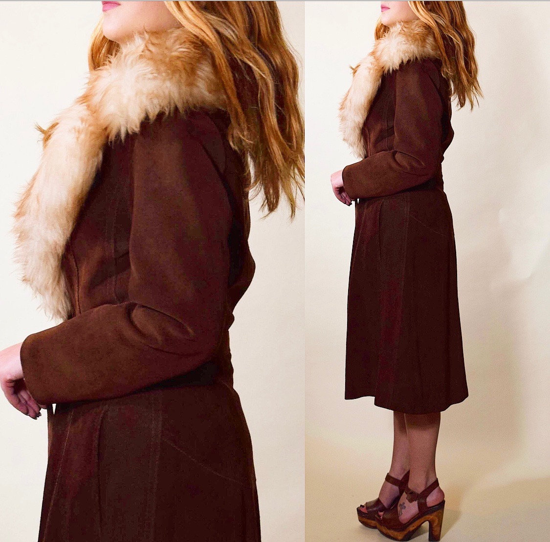 Classic + RARE Penny Lane inspired suede +sherpa collar Fur coat!